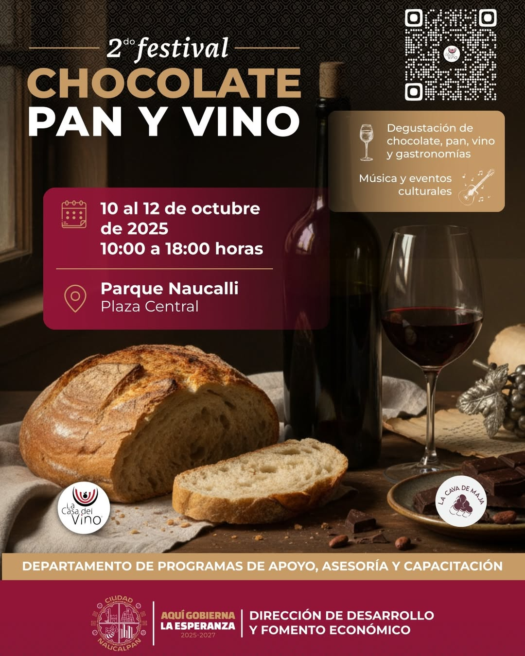 Desde hoy hasta el domingo 12 de octubre, llega la segunda edición del Festival Chocolate, Pan y Vino 2025, una cita gastronómica imperdible en la Ciudad de México. Lo mejor de la repostería artesanal, la cultura vinícola y los sabores del cacao. Con entrada gratuita, promete un fin de semana lleno de degustaciones, talleres y entretenimiento, un espacio para celebrar la creatividad y el trabajo de los pequeños productores.