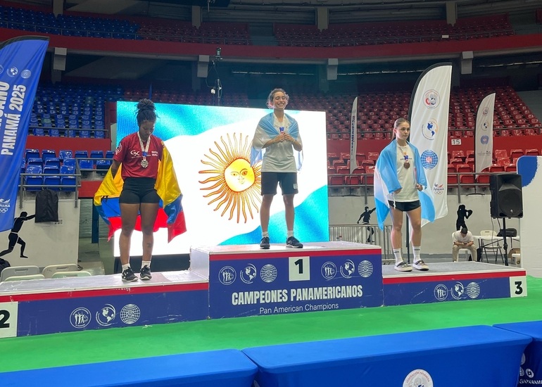 Katerine Valencia en el podio del Abierto Panamericano de Panamá, junto a las argentina Sara Banchoff y Aldana Andes.