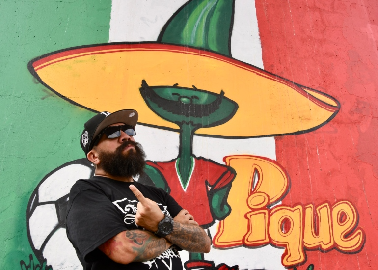 Yuka, el autor de la obra mundialista en Ciudad de México (Facebook/Ovaciones).