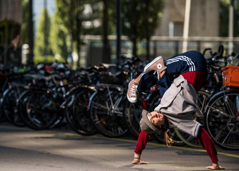 B-girl Kastet haciendo un freeze (Red Bull).