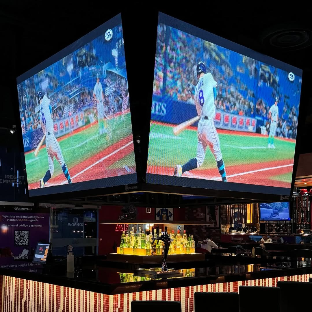 Y no solo podés mirar un partido de fútbol americano o de béisbol, sino que también podes experimentar conciertos de los artistas más destacados en vivo, al igual que disfrutar servicios como mesas de billar y pistas de boliche para utilizar previo, durante y posterior a los partidos así como también un amplio menú de bebidas y platillos.