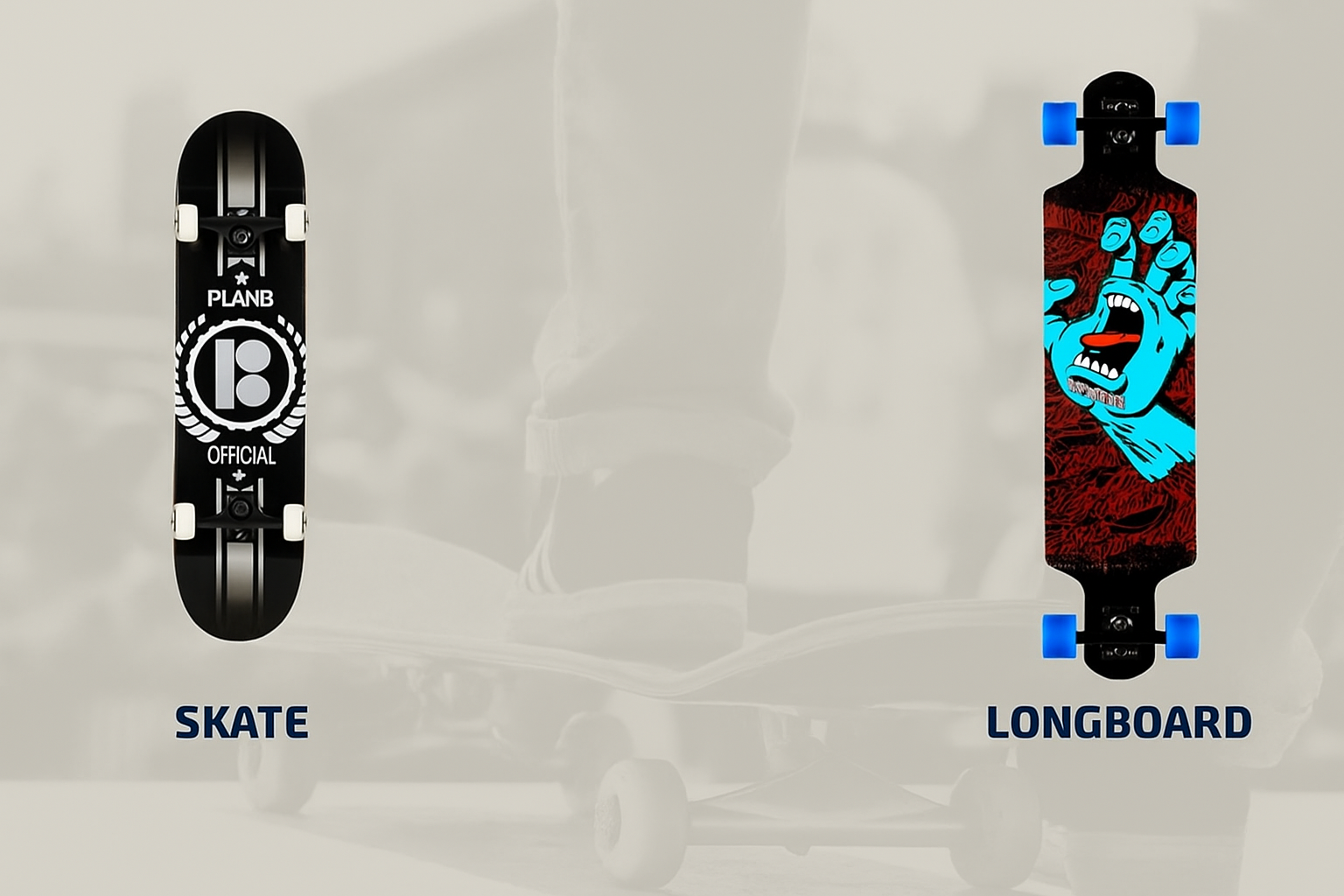 Una persona que busque aprender trucos, grindear barandas o escaleras y realizar saltos alocados, deberá comprar un skateboard, mientras que aquel que desee una experiencia más estable para disfrutar de las calles de la ciudad en movimiento se podría sentir mucho más cómodo en un longboard. Pero una cosa no quita la otra: un skateboard puede ser utilizado para pasear por los espacios urbanos, al igual que con un longboard pueden realizarse trucos. Hay estilos que combinan mejor con cada tabla, pero tranquilamente pueden ser usados sea cual sea la finalidad.