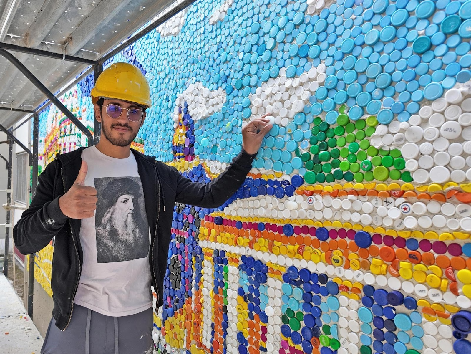 El artista venezolano Óscar Olivares inauguró "El Gesto que Transforma" en Caracas, un mural que utilizó más de 150.000 tapas plásticas. Este hecho estableció un nuevo récord en la capital.