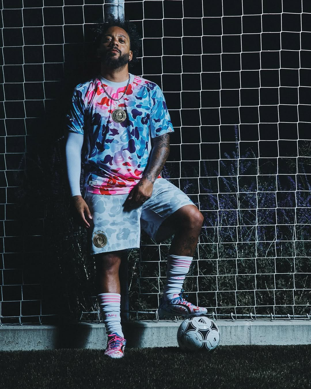 Marcelo, protagonista del lado deportivo de la colaboración entre Adidas y BAPE (BAPE).