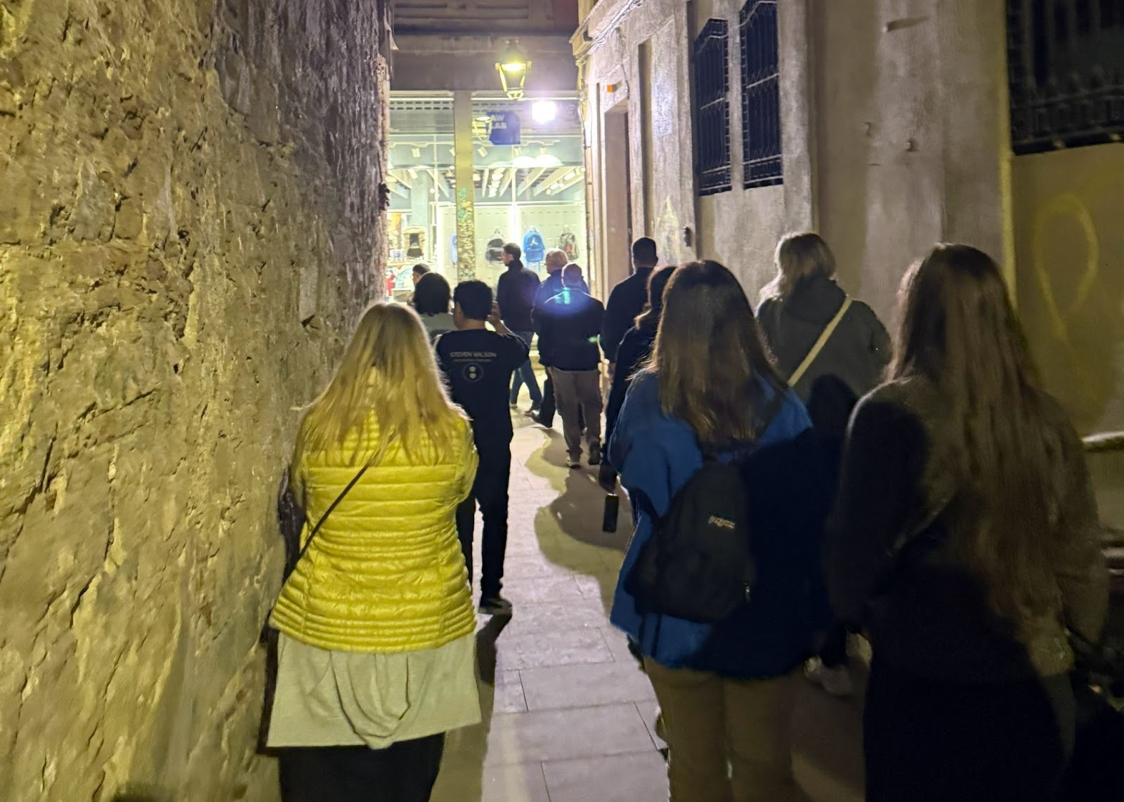 La experiencia empezó en el Barrio Gòtic, cuando nuestro guía Hernán, un argentino que vive en Barcelona desde hace años, nos anunció que nos dirigiríamos hacia un mural muy especial. Caminábamos rumbo al Born, mientras atravesábamos calles estrechas y silenciosas, típicas del casco histórico. La noche le daba al recorrido un tono más íntimo, más pausado.