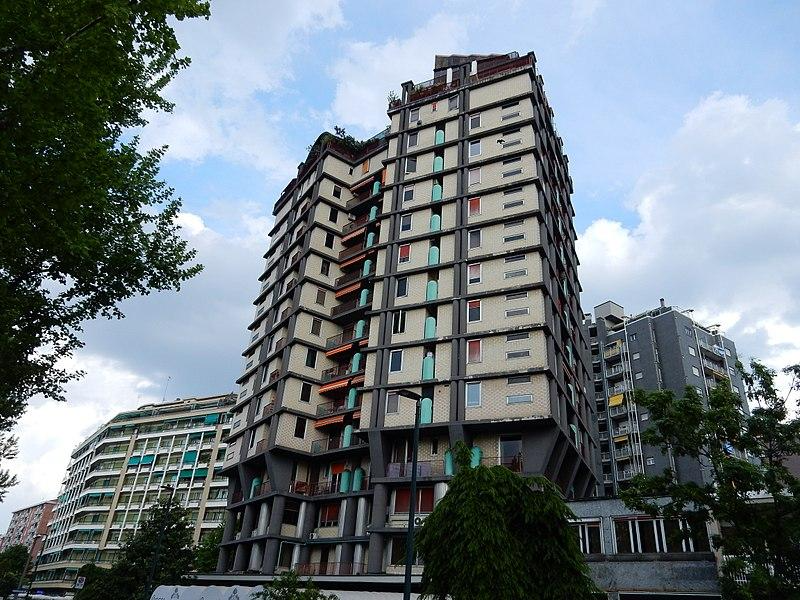 El diseño residencial con balcones de color espera a los curiosos. La Torre Mirafiori es uno de los espacios modernos que requiere inscripción previa obligatoria para ser explorado en detalle [Imagen], por Loquis.