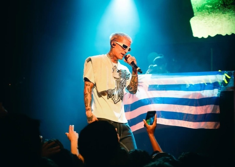 El trapero uruguayo Falke 912 vistiendo Lucca Bossio (Lucca Bossio).