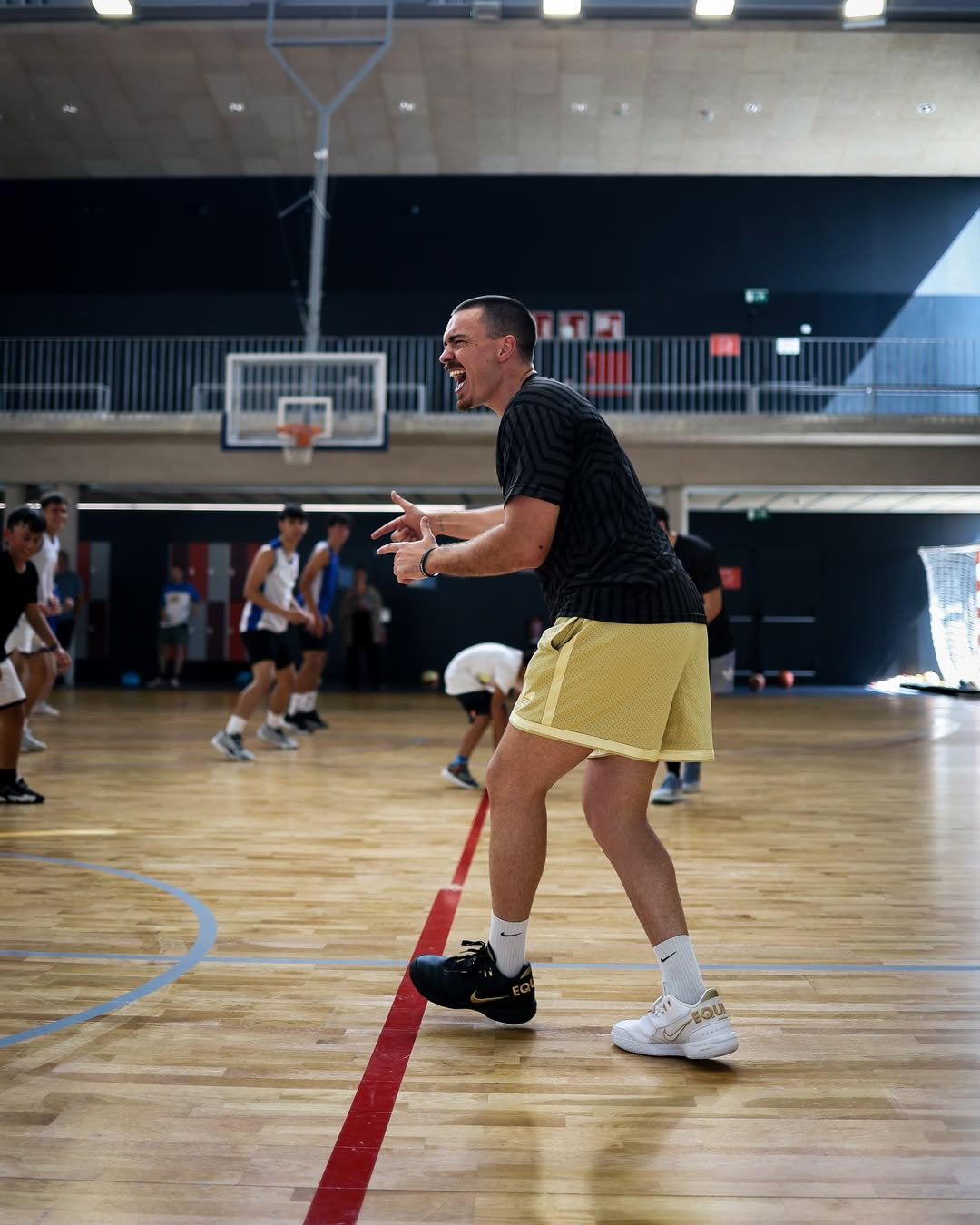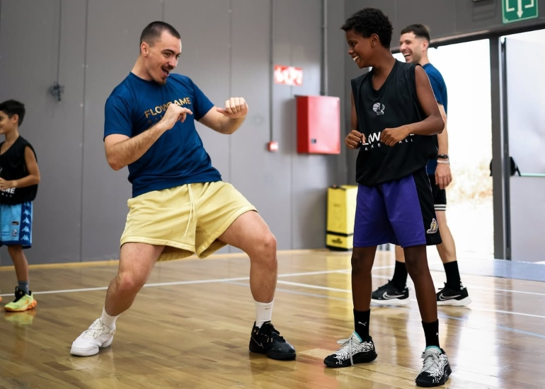 La sonrisa de Matías Gallo al mando de uno de sus campus de entrenamiento (Flow Game Basketball).