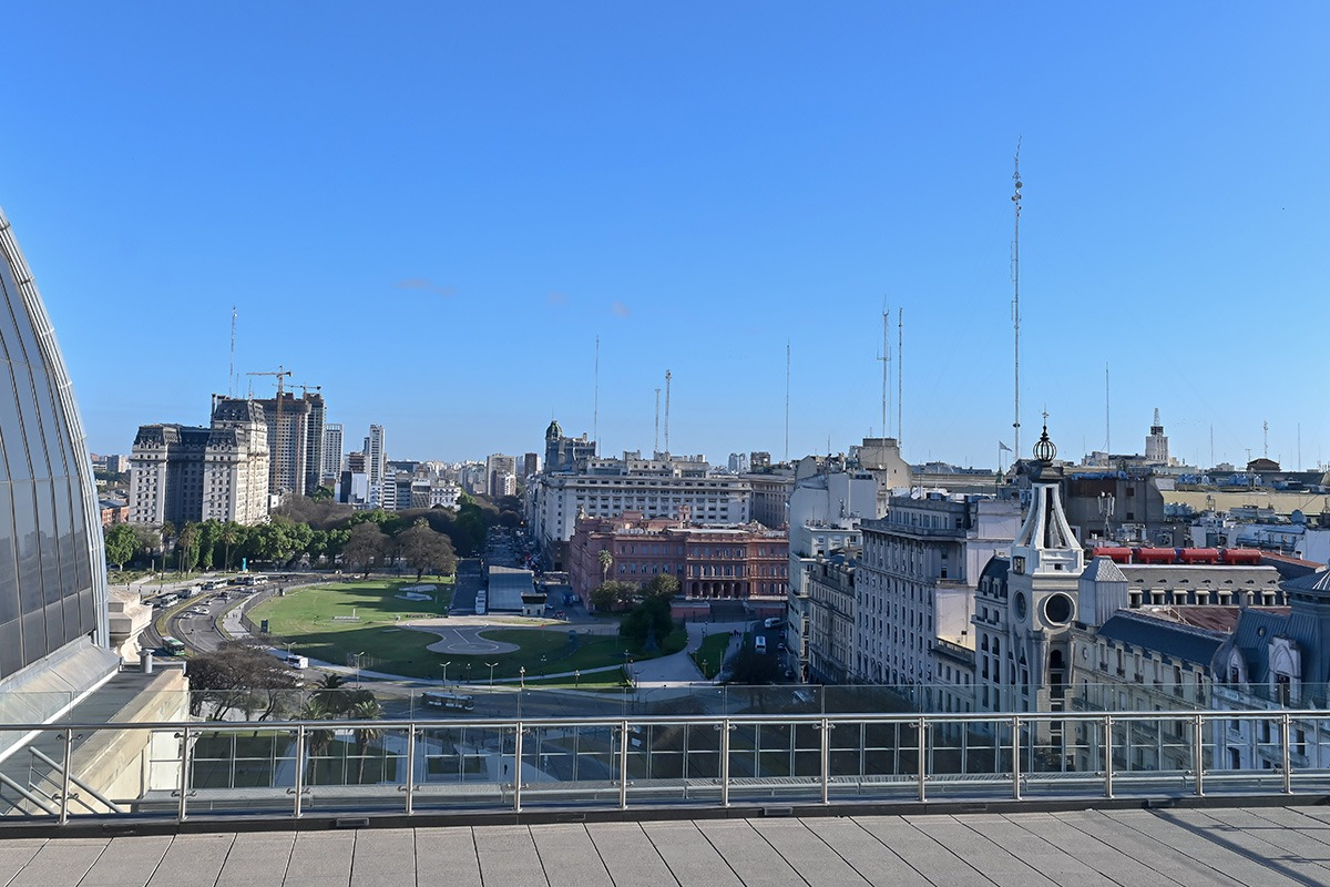 No me uní a la visita guiada de las 19 Hs, pero recomiendo hacerla porque permite acceder al espectacular mirador del noveno piso. Desde allí la ciudad aparece como una postal singular. Ese punto alto del recorrido es una de las mejores formas de entender la escala urbana que rodea al Palacio Libertad.